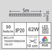 TIRA LED 62W RGB IP45 SMD 5050 120V 5M