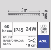 TIRA LED 24W AZUL IP45 SMD-2835 120V 5M