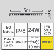 TIRA LED 24W AMARILLO IP45 SMD-2835 120V 5M