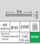 TIRA LED 24W VERDE IP45 SMD-2835 120V 5M