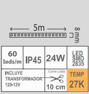 TIRA LED 24W 27K IP45 SMD-2835 120V 5M