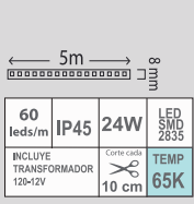 TIRA LED 24W 65K IP45 SMD-2835 120V 5M