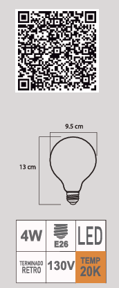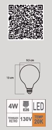 FOCO LED RETRO G95 E26 130V DIMMABLE