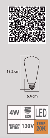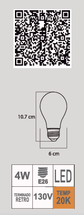 AgotadoFOCO LED RETRO A19 4W E26 130V