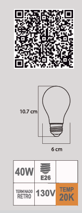 AgotadoFOCO RETRO A19 40W E26 130V INC