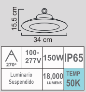 AgotadoLED UFO-150/C 150W 50K 100-277V