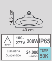 AgotadoLED UFO-200/C 200W 50K 100-277V